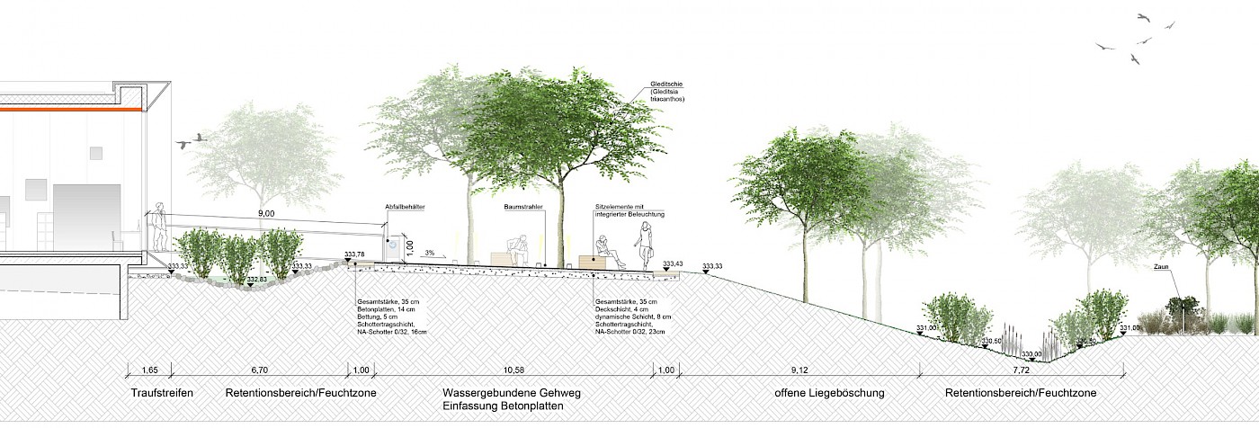 Gestaltung der Außenanlagen der Neubauten