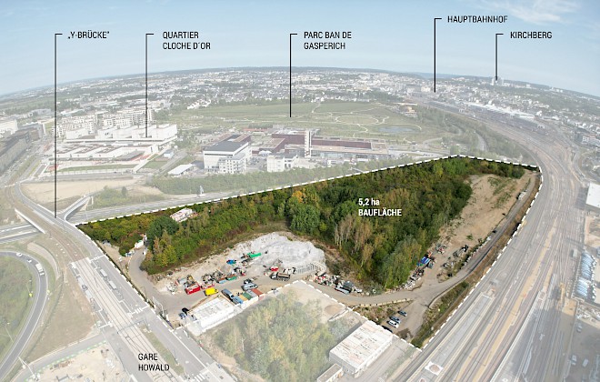 Zwischen Gasperich und Howald wird in den nächsten Jahren ein ganz neues Viertel entstehen: Das Projekt heißt Midfield. Als eines der ersten Gebäude wird hier das neue Lycée technique du Centre entstehen. Die Schule, die derzeit in Limpertsberg angesiedelt ist, wird über eine Sporthalle mit Schwimmhalle sowie eine Mensa verfügen.
