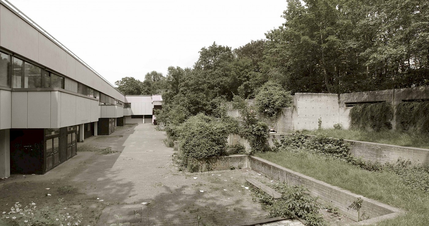 Die gesamte Gestaltung erfolgt unter Würdigung des denkmalgeschützten Ensembles aus den 70er-Jahren, die bauzeitlichen Grundgedanken werden dabei aufgegriffen und durch neue gestalterische Ansätze unterstützt.