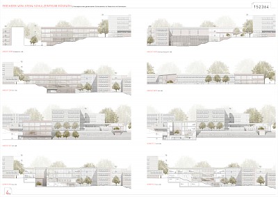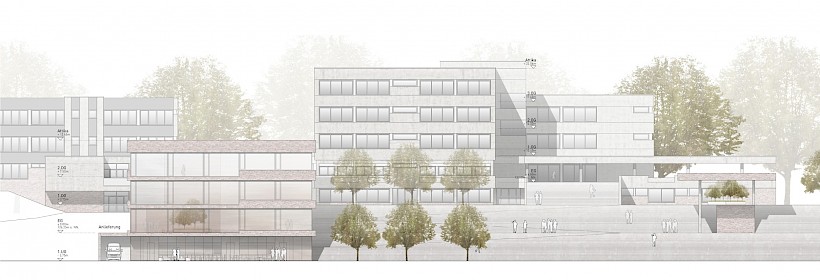 Ziel des Wettbewerbs war es, das bestehende Schulgebäude am Standort zu sanieren und für die Neuordnung der Schulsysteme mit zukünftig rund 1.500 Schülern herzurichten. Darüber hinaus sollten die gemeinsam genutzten Bereiche, wie Mensa, Räumlichkeiten für den gebundenen Ganztagsbetrieb und Fachräume in einem zusätzlichen neuen Gebäude gebündelt werden. Eine entsprechende Qualifizierung der stark topografisch geprägten Freiräume war Bestandteil der Aufgabe.