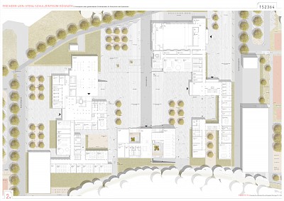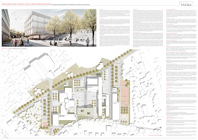 Der Freianlagenentwurf versteht das Schulzentrum als Einheit und schafft über die klare Strukturierung der Außenräume eine Verbindung der bisher weitgehend räumlich voneinander getrennten Schulhöfe der Realschule Rösrath und des Freiherr-von-Stein-Gymnasiums. Dabei bleiben die den jeweiligen Schulen zugeordneten Freiflächen jederzeit klar ablesbar; durch eine symmetrische Grundordnung mit der Campusmagistrale und dem gemeinschaftlich genutztem Neubau als Zentrum gelingt es, den jeweiligen Außenräumen eine eigene Identität zu geben bei gleichwertiger Behandlung der Schulen im schwierigem topografischen Umfeld.