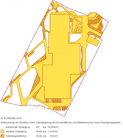 Verbesserung der Ökobilanz durch Teilentsiegelung der Schulhofflächen und Minimierung des neuen Versieglungsgrades.