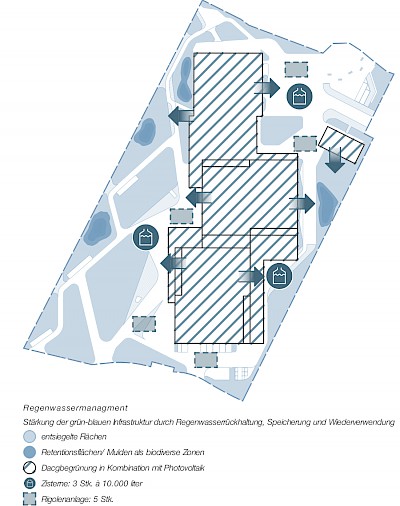 Stärkung der grün-blauen Infrastruktur durch Regenwasserrückhaltung, Speicherung und Wiederverwendung