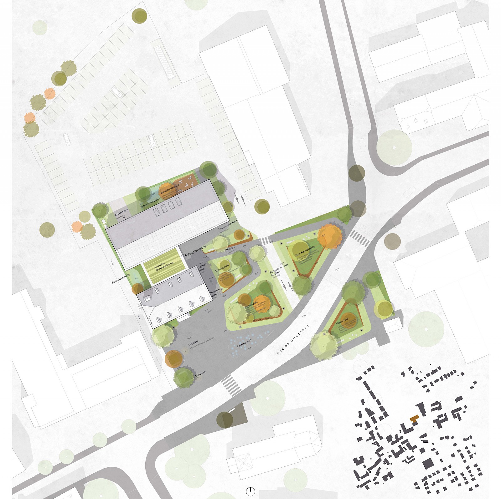 Durch die Verlagerung der Verwaltungseinrichtungen Conterns in die ehemalige Schule und den daran angeschlossenen Neubau erhält das Projektgebiet eine vollkommen neue städtebauliche Prägnanz. Die unmittelbare Nähe zur Kirche sowie der Ausrichtung an der Haupterschließungsstraße Rue de Moutfort lässt das Umfeld des neuen Gemeindehauses auch als neuer Ortskern erscheinen. Die Betrachtung der umliegenden Freiflächen baut das Potential zur Ausbildung eines eindrucksvollen Ortskerns weiter aus.
