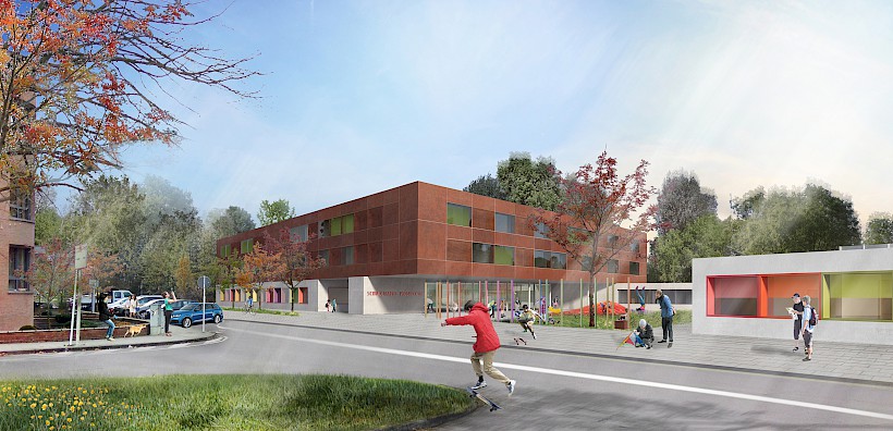 Der neue Schulkomplex auf dem aktuell unbebauten Grundstück gibt dem Stadtviertel einen neuen Abschluss entlang des Boulevard Grande-Duchesse Charlotte und schafft damit eine neue städtebauliche Qualität für das Quartier.