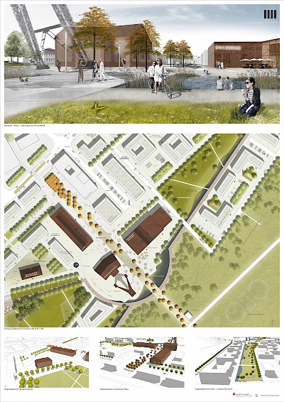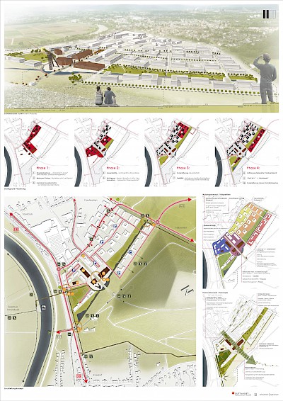 Der Entwurf setzt auf eine städtebaulich-architektonische Qualität im Quartier und Angemessenheit der baulichen Dichte im Kontext der angrenzenden Wohn- und Stadtquartiere. Zudem stellen die Vernetzung der übergeordneten Grünstrukturen und die Integration diverser Freizeitaktivitäten einen zentralen Baustein des Konzeptes dar, wie auch eine modulare Quartiersentwicklung in starker interkommunaler Zusammenarbeit.